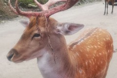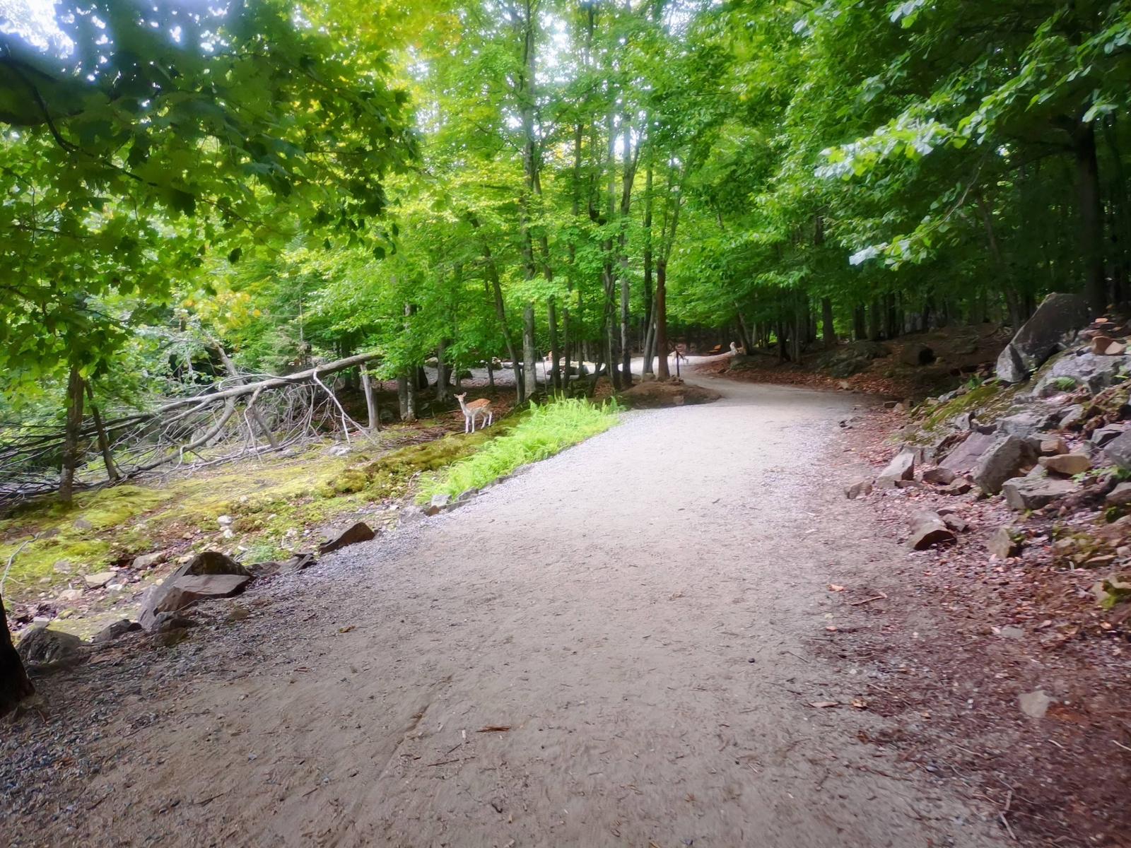 Le parcours en voiture est balisé et l’on passe au milieu des cervidés (cerfs de virginie, cerfs rouge, daims, wapitis, caribous, orignaux, sangliers et leurs petits)