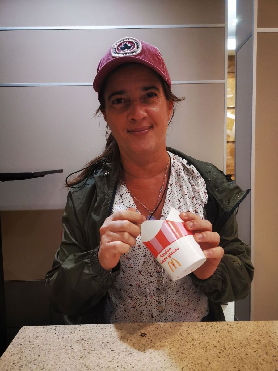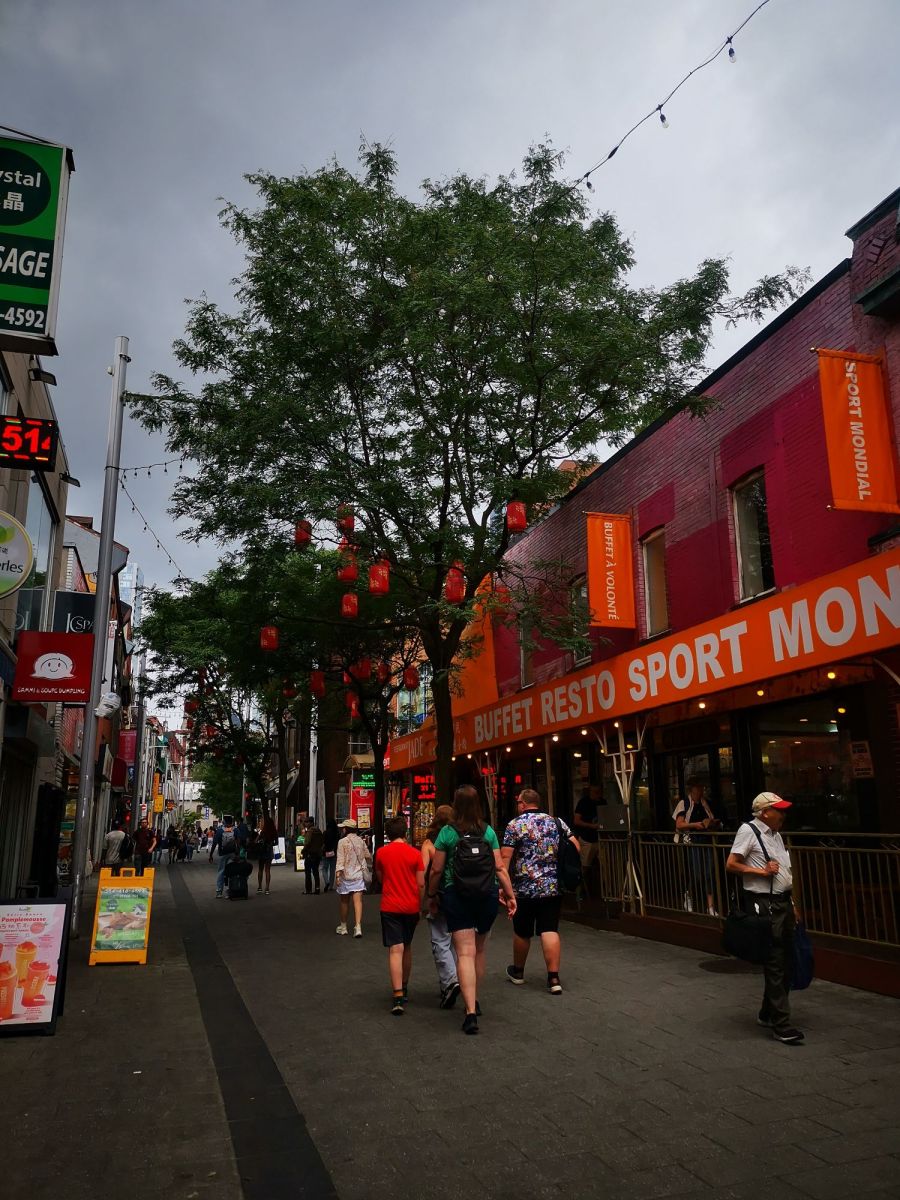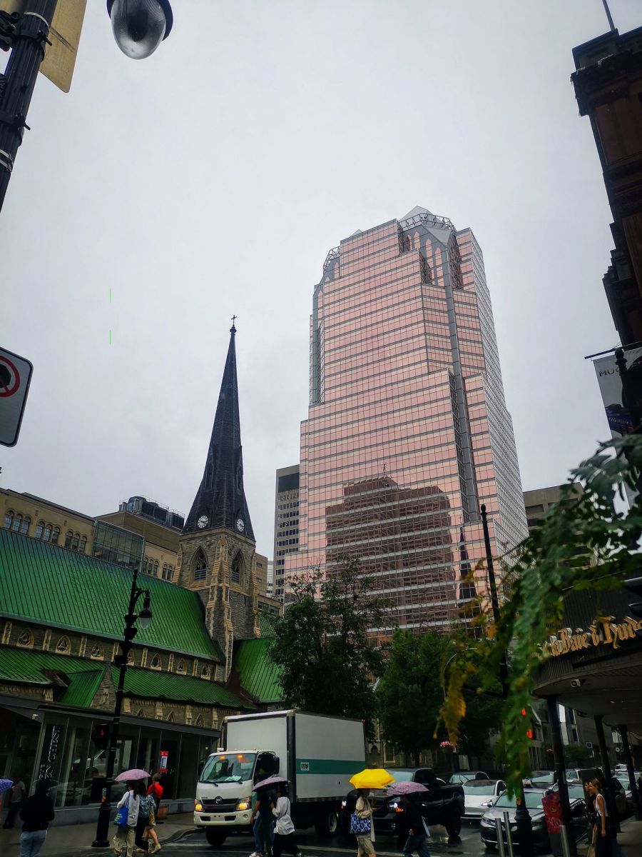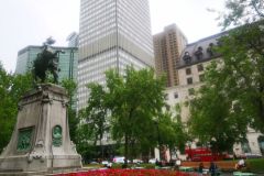 Vendredi 25 : repas au restaurant Fish and chips avec Bernard Masti et Caroline, puis dernière balade à Montréal : Arrêt métro Berri, nous descendons vers le vieux port et le vieux Montréal, visite de l’église Notre Dame de Lourdes au passage, il y a moins de monde sur la place J.Cartier. Petit détour au quartier chinois, et place des Arts où il y a un concert puis dernière descente dans les galeries de Eaton avant de reprendre le métro McGill