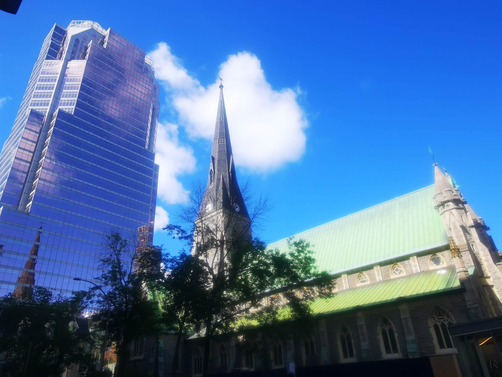 Changement de métro à Berri et descente à McGill, et nous sommes immergés instantanément au milieu d’immenses gratte ciels tout autour de nous!